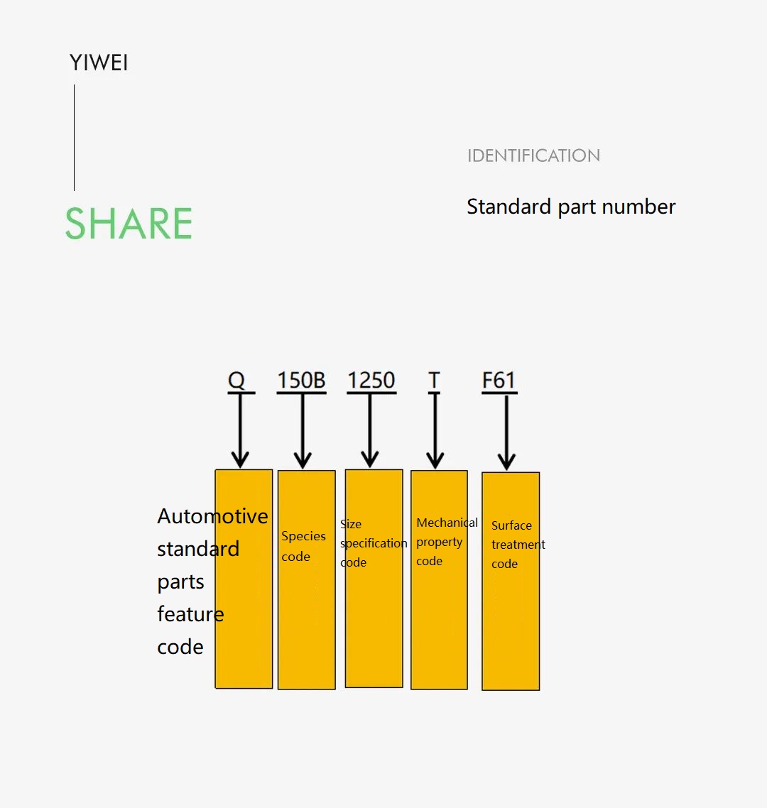 Each main engine manufacturer in the automotive industry uses the standard “Automotive Standard Parts Product Numbering Rules” (QC/T 326-2013) to formulate the specifications for enterprise standard parts numbering, and the content remains the same despite variations.