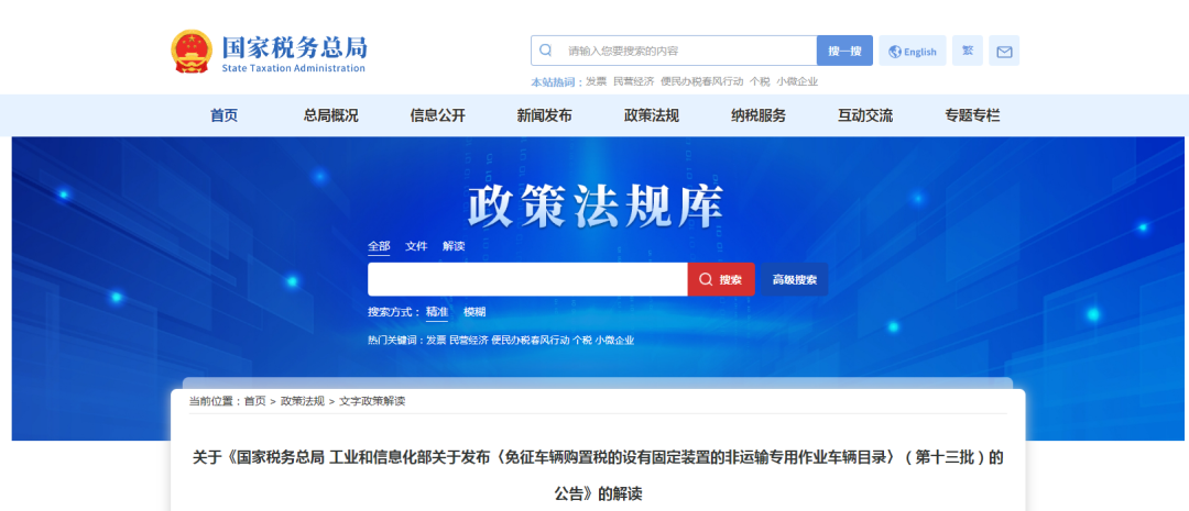 The “Catalog” includes the “List of Vehicle Names for Inclusion in the Catalog of Non-Transport Special Operation Vehicles Exempted from Vehicle Purchase Tax” (referred to as the “List” hereinafter). For specialized vehicles listed in the “List,” applicants no longer need to apply for inclusion in the “Catalog” separately but can directly indicate the tax exemption status when uploading vehicle electronic information.